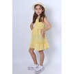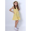 Kız Çocuk Şapkalı Elbise Kareli Fiyonklu B33 Sarı