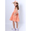 Kız Çocuk Şapkalı Elbise Kareli Fiyonklu B33 Turuncu
