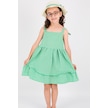 Kız Çocuk Şapkalı Elbise Kareli Fiyonklu B33 Yeşil