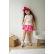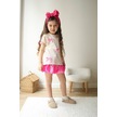 Kız Çocuk Şeker Pembe Parlak Payet Kumaş Balon Etek Fiyonk Nakışlı T-shirt Altüst Takım Pembe