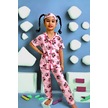 Kız Çocuk Sevimli Baskı Desenli Kısa Kol Pijama Takımı 3 Parça Pembe