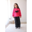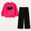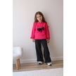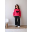 Kız Çocuk Siyah 2 Li Takım Kırmızı Organze Gül Detaylı Sweatshirt & Rahat Eşofman Takım Çingene Pembe