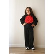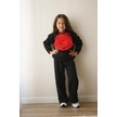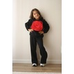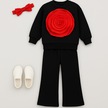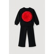 Kız Çocuk Siyah 2 Li Takım Kırmızı Organze Gül Detaylı Sweatshirt & Rahat Eşofman Takım Red Rose