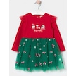 Kız Çocuk Snowman And Penguın Tüllü Yılbaşı Elbise Nbk-24915 Kırmızı