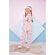 Kız Çocuk Desenli Düğmeli Uyku Bantlı Alt Üst Pijama Takım Pembe