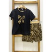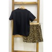 Kız Çocuk Şort Etek Takım Leopar Baskılı Fırfırlı B1 Siyah