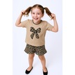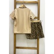 Kız Çocuk Şort Etek Takım Leopar Baskılı Fırfırlı B1 Taba