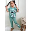 Kız Çocuk Stitchh Desenli Kısa Kollu Tshırt Eşofman 2'li Takım-989 Yeşil