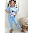 Kız Çocuk Stitchh Desenli Kısa Kollu Tshırt Eşofman 2'li Takım-993 Mavi
