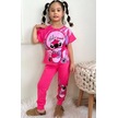 Kız Çocuk Stitchh Desenli Kısa Kollu Tshırt Eşofman 2'li Takım-995 Koyu Pembe