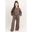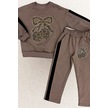 Kız Çocuk Taş İşlemeli Kiraz Ve Fiyonk Desenli-2 İplik-alt-üst Takım-5-12 Yaş 12445 Kahverengi