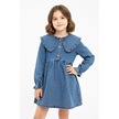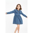 Kız Çocuk Taş Süslemeli Ve 3 Düğme Kapatmalı Jean Elbise 12444 İndigo