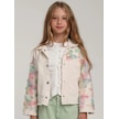 Kız Çocuk Tasarım Çiçekli Kot Ceket-15577 Ekru