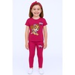 Kız Çocuk Taytlı Takım Saç Bandı Hediyeli Baskılı C64 Fuşya