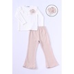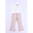Kız Çocuk Triko Takım Fiyonklu Fırfırlı İspanyol Paça E21 Bej