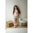 Kız Çocuk Tül Çiçek Aplike Detaylı Pamuklu Tshirt Gümüş Renk Detaylı Mini Balon Etek Altüst Takım Beyaz Pembe Beyaz - Pembe