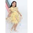 Kız Çocuk Tütülü Elbise Tül Kumaş Astarlı Bel Lastikli Rahat Zarif Elbise Kostüm Sarı