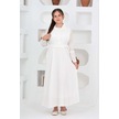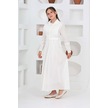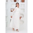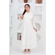 Kız Çocuk Uzun Boy Gofre Kumaş Jile & Elbise İki Parça Takım Astarlı Zarif Set-4948 Ekru