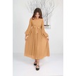 Kız Çocuk Uzun Boydan Pliseli Şifon Elbise Açık Kahve