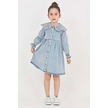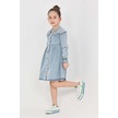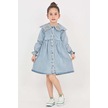 Kız Çocuk Yaka Detaylı Ve Boydan Düğmeli Jean Elbise 12339 Açık Mavi