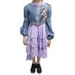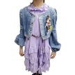 Kız Çocuk Yakası Fırfırlı Kot Ceket Lila Renk İkili Takım Elbise Lila