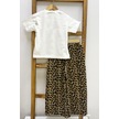 Kız Çocuk Yazlık İkili Takım Leopar Baskılı B46 Krem