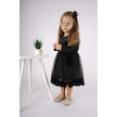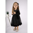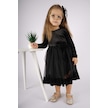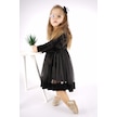 Kız Çocuk Yılbaşı Temalı Fiyonklu Eteği Tül Uzun Kol Elbise Siyah