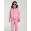 Kız Çocuk Yıldız İşlemeli Cep Detaylı Tasarım Pembe Kot Ceket-15651 Pembe