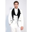 Klasik Kadife Yaka Beyaz Smokin Takım - Wessi Mavi