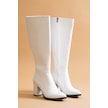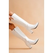 Kleo Beyaz Deri Topuklu 7cm Yanı Fermuarlı Günlük Kullanım Çizme Beyaz