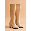 Kleo Nude Deri Topuklu 7cm Yanı Fermuarlı Günlük Kullanım Çizme Ten Rengi