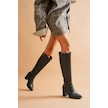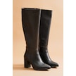 Kleo Siyah Deri Topuklu 7cm Yanı Fermuarlı Günlük Kullanım Çizme Siyah