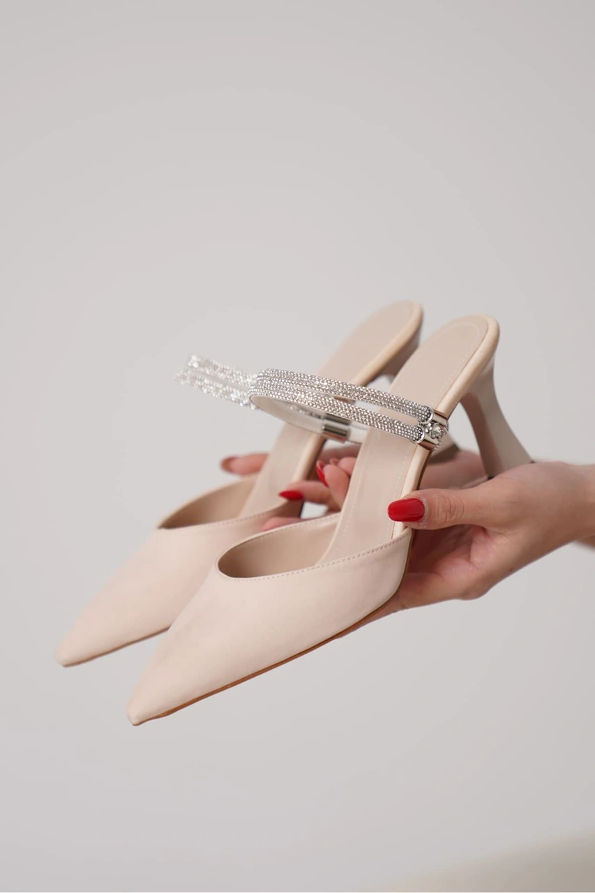 Kocadal Kocadal Georgina Kadın Taşlı Bej Saten Topuklu Ayakkabı Muhtelif