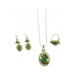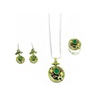 Yeşil Zirkon Taşlı Gold Rengi 925 Ayar Gümüş Kadın 3'lü Set Gold