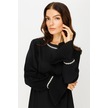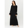 Kol Ağzı Plise Detaylı Şerit Taş İşli Elbise Siyah-siyah Siyah