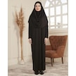 Kol Detaylı Namaz Elbisesi Tek Parça Kendiliğinden Başörtülü Siyah