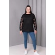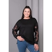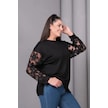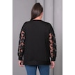 Kolları Tül Çiçek Aplikeli Bluz Siyah