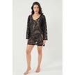 Kolları Volanlı Şal Desen Elbise Siyah