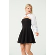 Kolluk Detay Mini Kloş Elbise Siyah Beyaz