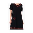 Kolsuz Şile Bezi Kruvaze Yaka Nakışlı Tülin Midi Boy Yazlık Otantik Elbise Siyah Syh-siyah Siyah