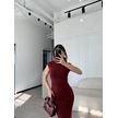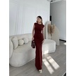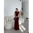 Kolsuz Uzun Likralı Elbise - Bordo Bordo