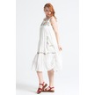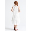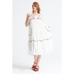 Eteği Volanlı Uzun Elbise Kırık Beyaz