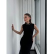 Kolsuz Yarım Bogazlı Uzun Elbise- Siyah Siyah