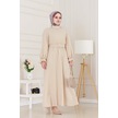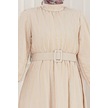 Kolu Volanlı Kemerli Henna Elbise-bej-5057 Bej