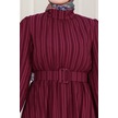Kolu Volanlı Kemerli Henna Elbise-bordo-5053 Bordo