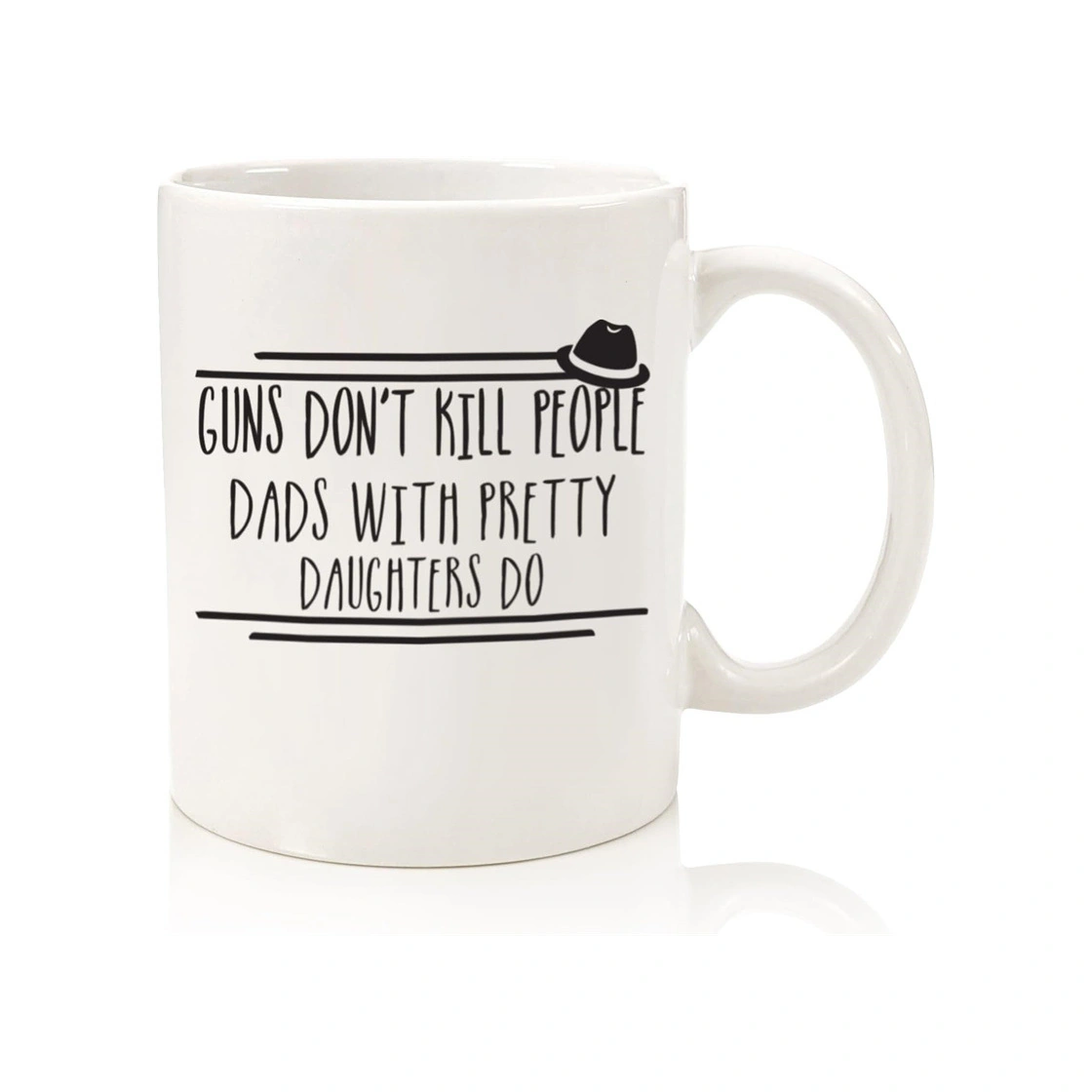 Komik Baba Kahve Kupası 350ml "silahlar İnsanları Öldürmez, Güzel Kızları Olan Babalar Öldürür" Babalar, Kızları Olan Babalar İçin Seramik Kupa, 8,2x9,5 Cm