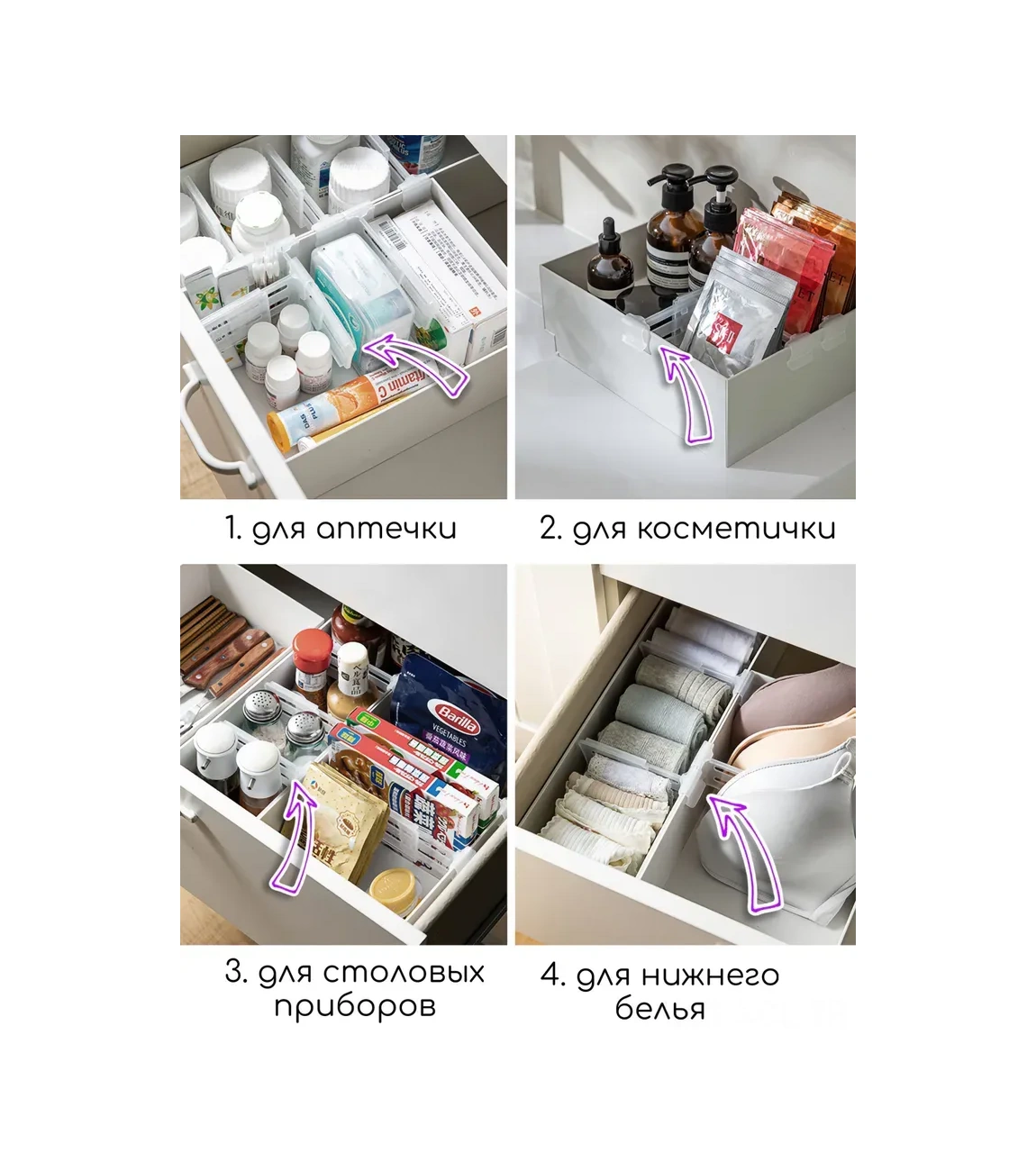 Konesam 8 Adet Çerçeveli Buzdolabı Bölücü, Genişletilebilir Plastik Organizatör - Dolap, Raf Ve Mutfak İçin Çok Amaçlı Depolama Aracı Beyaz
