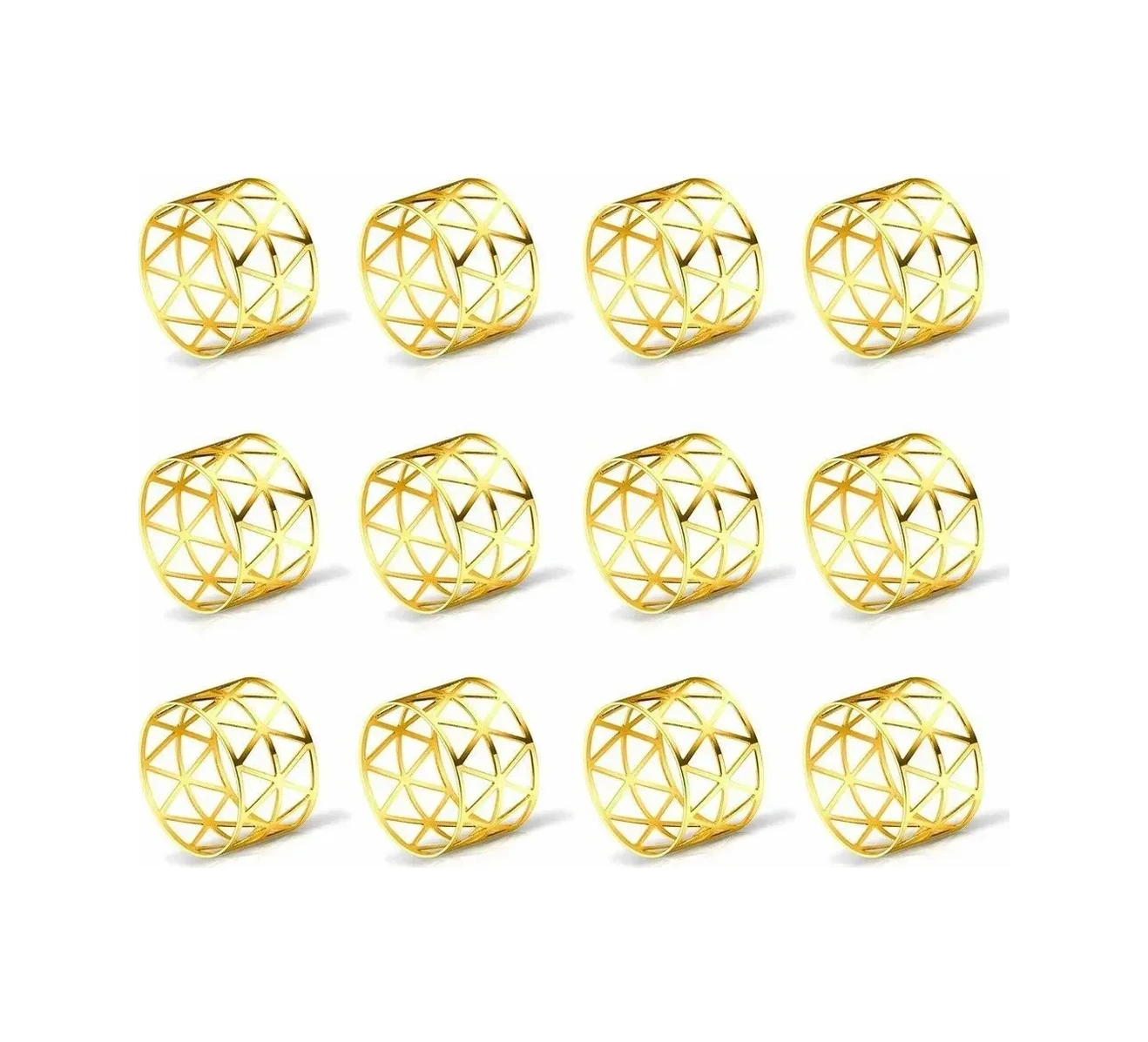 Konesam Altın Renkli Metal Servis Yüzük Seti - Üçgen Ve S-şekilli 12 Adet, Dayanıklı Masa Dekorasyonu Aksesuarı Altın