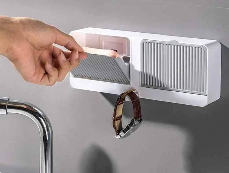 Konesam Duvar Montlu Sabunluk, Beyaz, İki Bölmeli, Deliksiz, Otomatik Sulama Çıkaran, Plastik, Banyo Ve Mutfak Uygun Beyaz