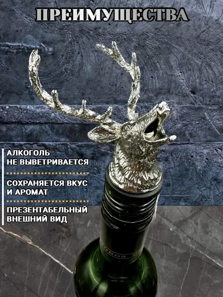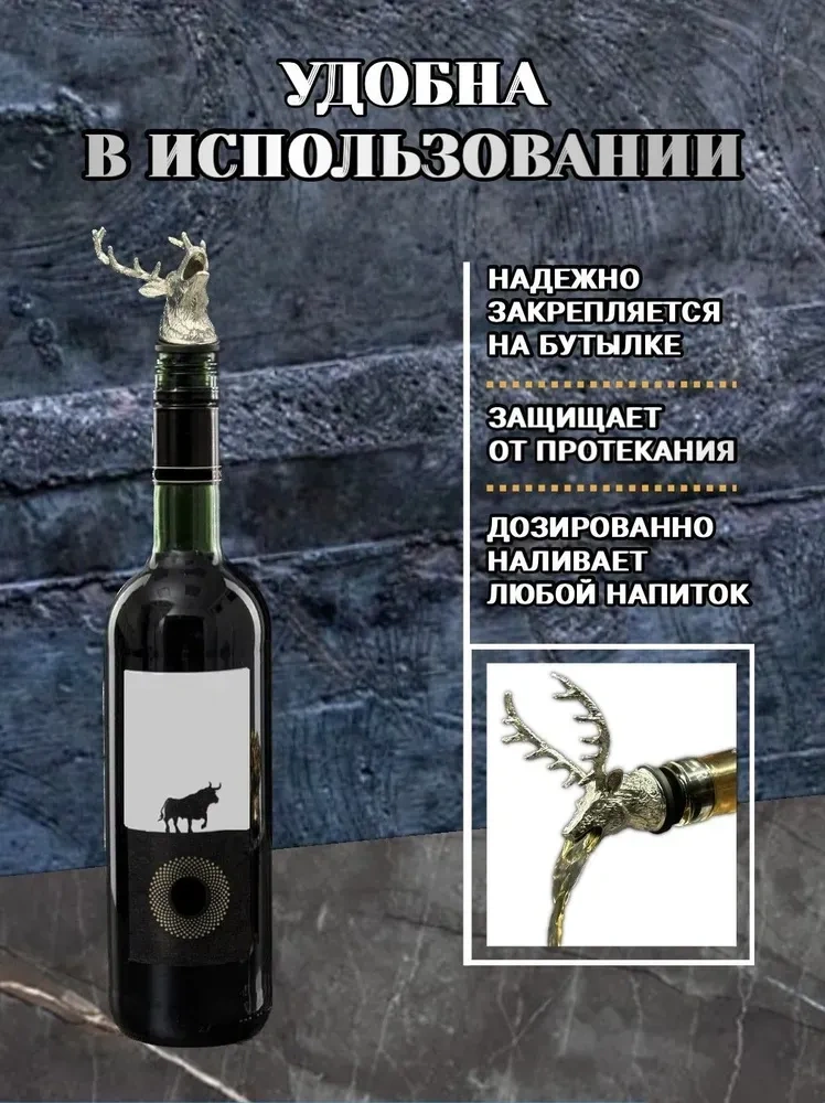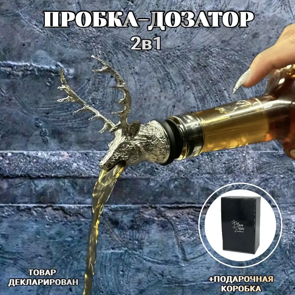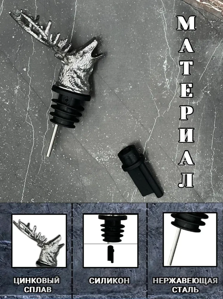 Konesam Gümüş Geyik Başlıklı 2'li Sulandırıcı Ve Tıkanıklama Seti - Paslanmaz Çelik Ve Çinko Alaşımlı - Bar Aksesuarı